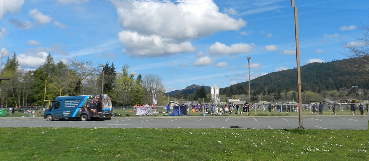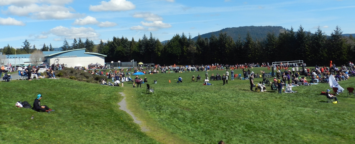 It was a beautiful sunny Saturday on the Easter weekend in Sooke. I started at EMCS after stopping for a coffee at the nearby Tim Horton’s. Pearson College were having a sports day, a soccer tournament by the looks of it, more on that later but the big news was at Journey Middle School where over 20 teams from up and down the Island were having a Junior Football Jamboree.