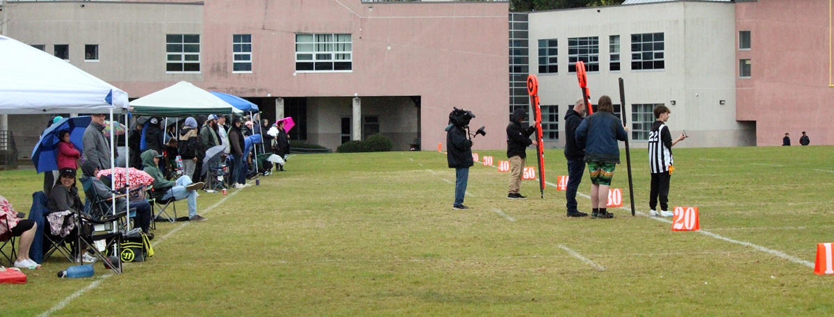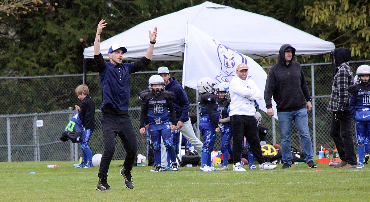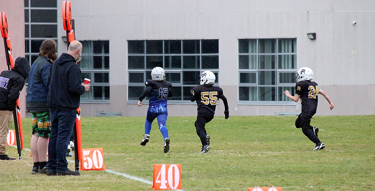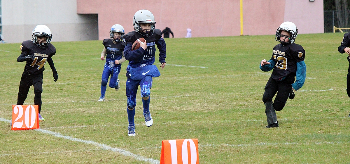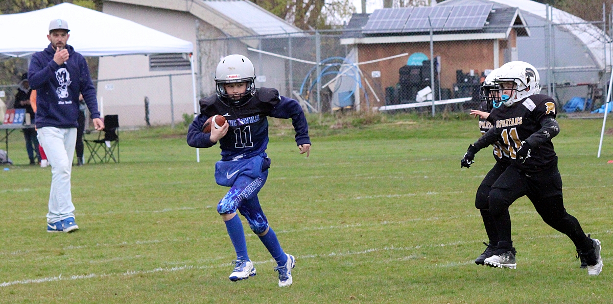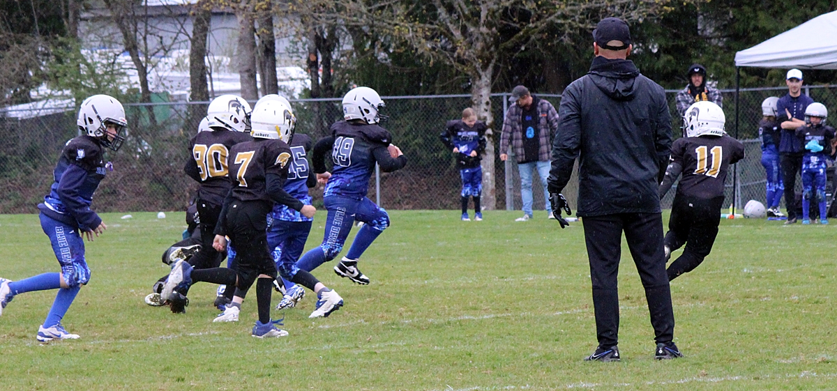 When we left the Sooke Blue Devils were handily in the lead, #11 and #19 scored multiple touchdowns between them. It looks like it’s 6 aside football and the coaches are on the field to provide direction. More details to follow.