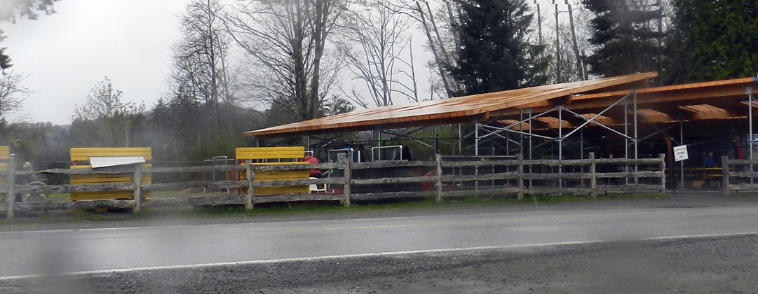You may have noticed a new structure going up across the street from the Fred Milne sports complex, that’s the Horseshoe Pitching Association building a roof over part of their facilities so they can play year round out of the rain. The roof has openings across the top, likely to have glass panels installed for extra light. There were a few members out throwing horseshoes in the drizzle, it looks like a friendly group, their website has more information on how to join.