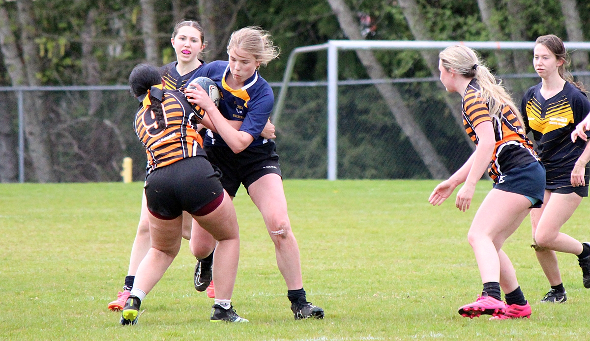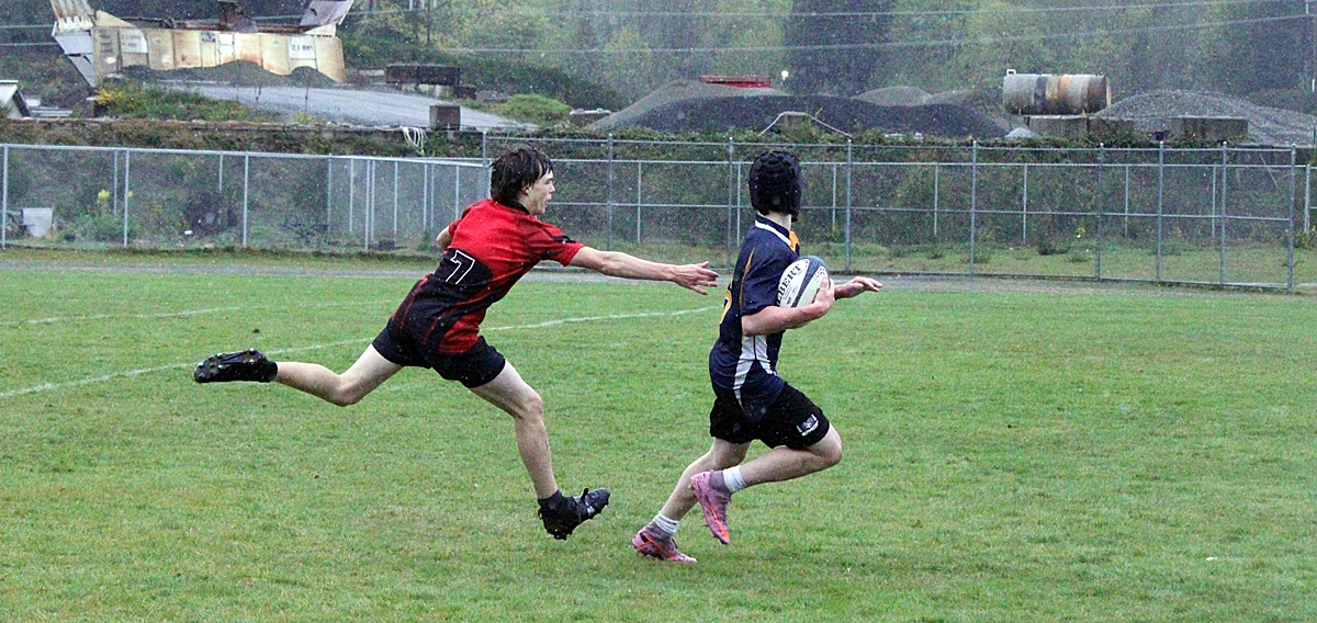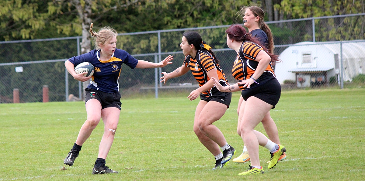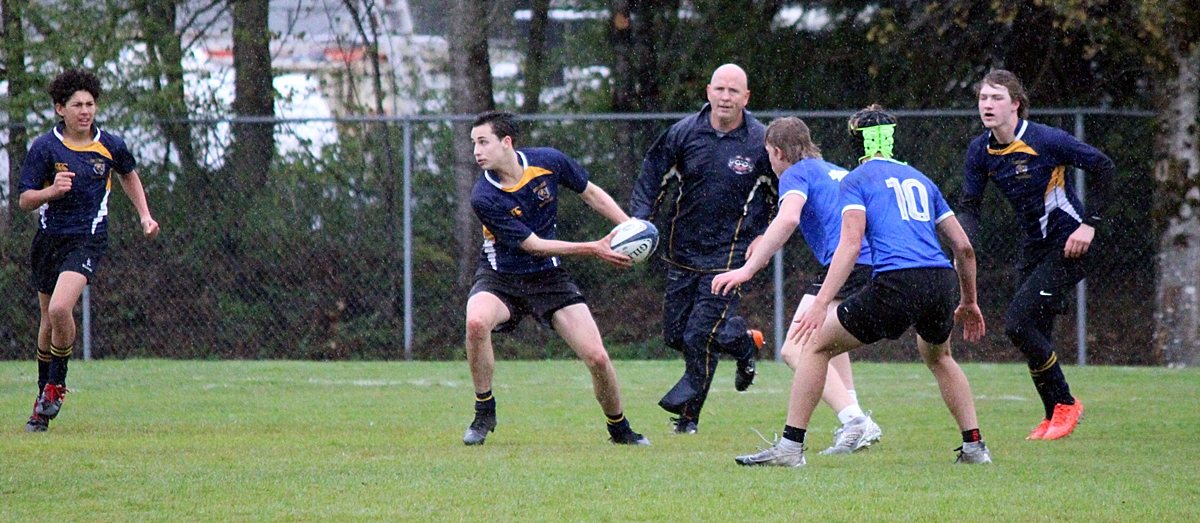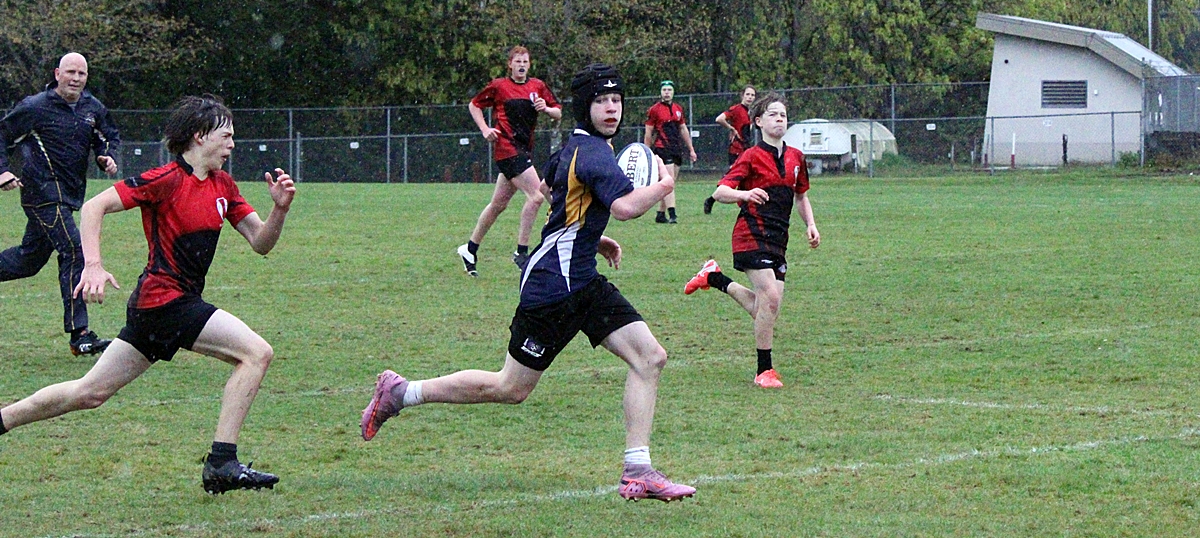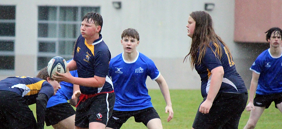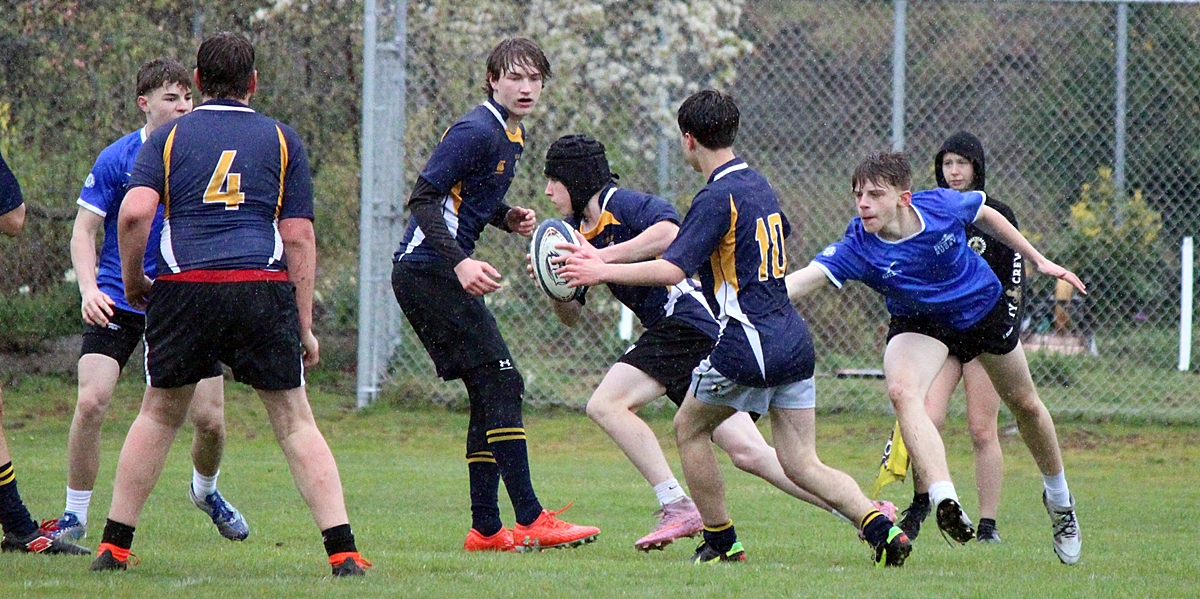 The EMCS Wolverines rugby teams had their home openers on Monday April 13th and Tuesday April 14th. The girls team kicked it off on Monday hosting Belmont, Spectrum and Glenlyon Norfolk schools for an afternoon of rugby 7s. The boys hosted Belmont and Esquimalt on Tuesday. The girls had the better weather, overcast and windy, compared to the boys who played under lashing rain throughout the afternoon. Photos of both days featuring the EMCS teams are posted below.