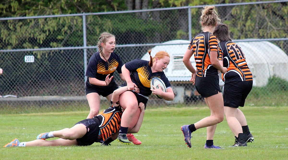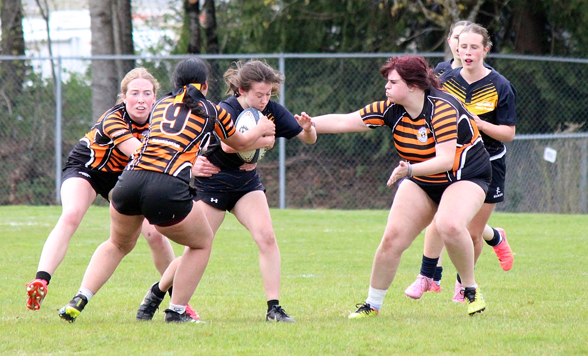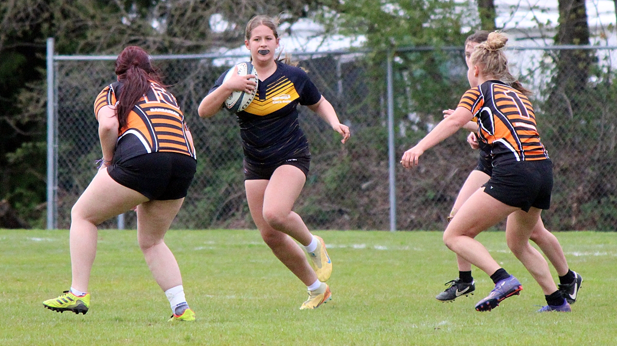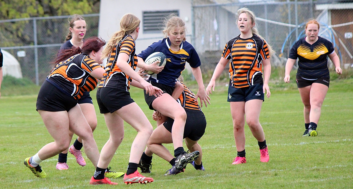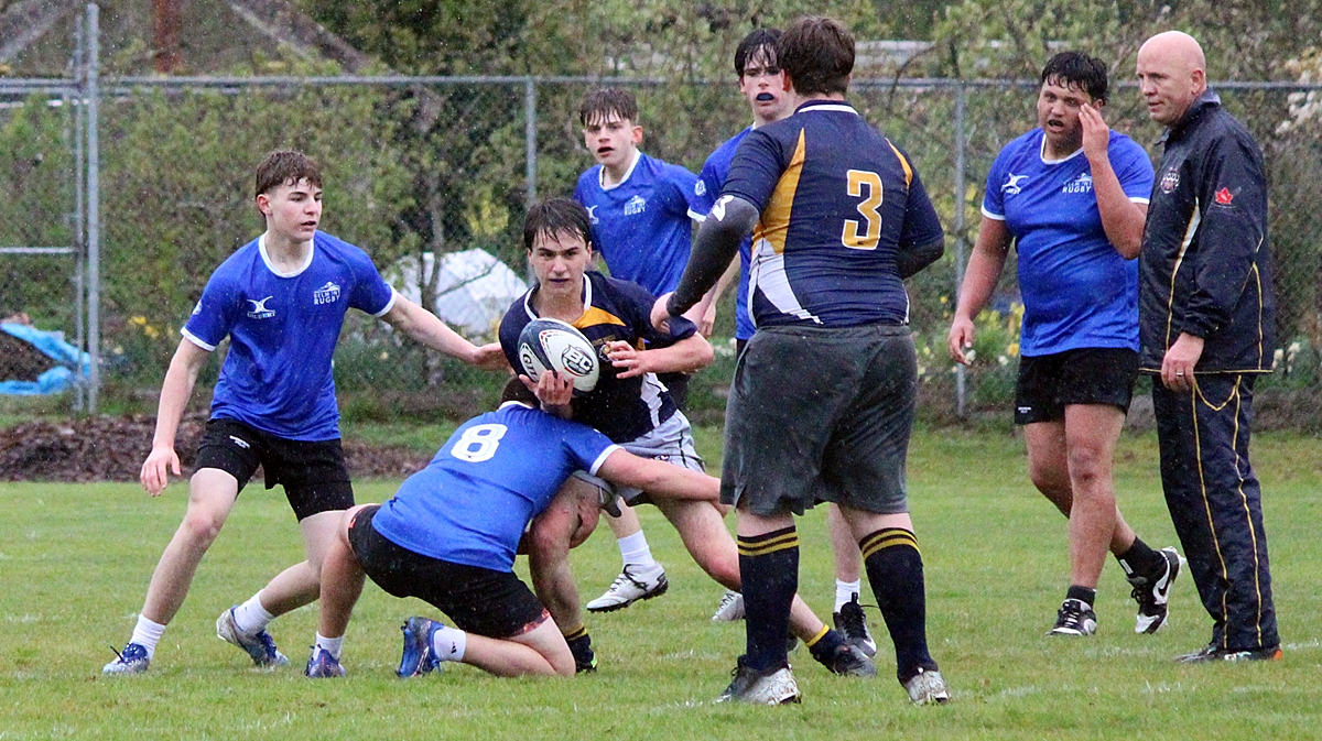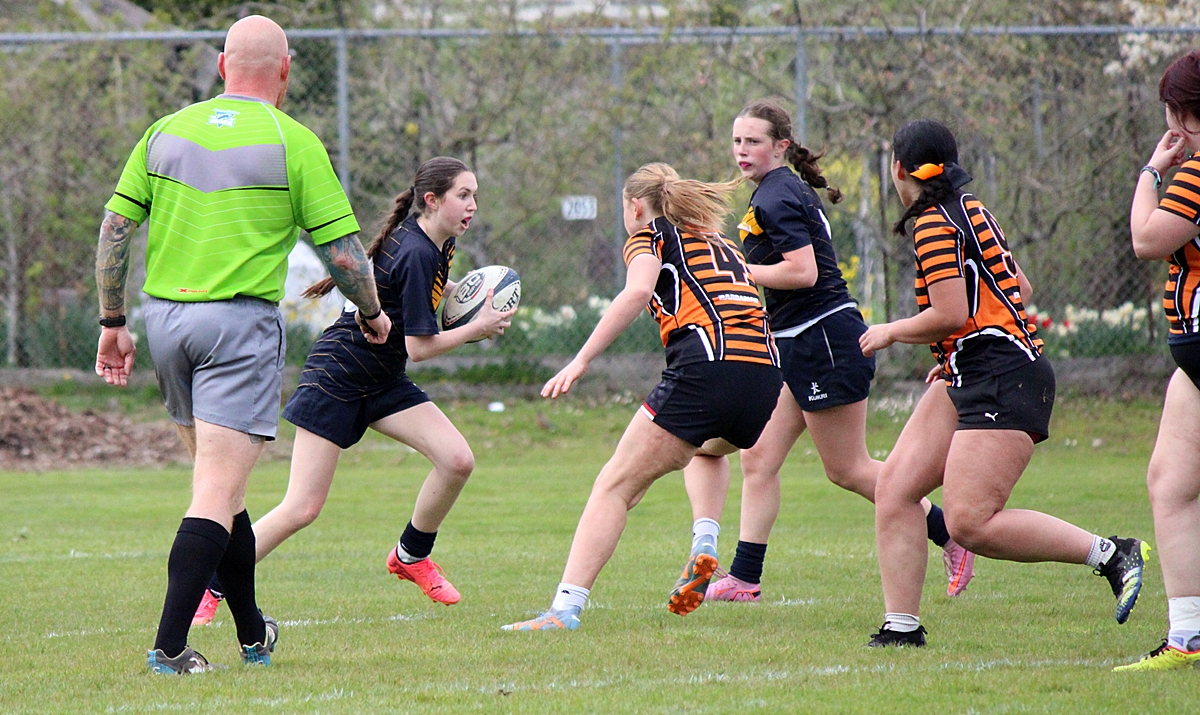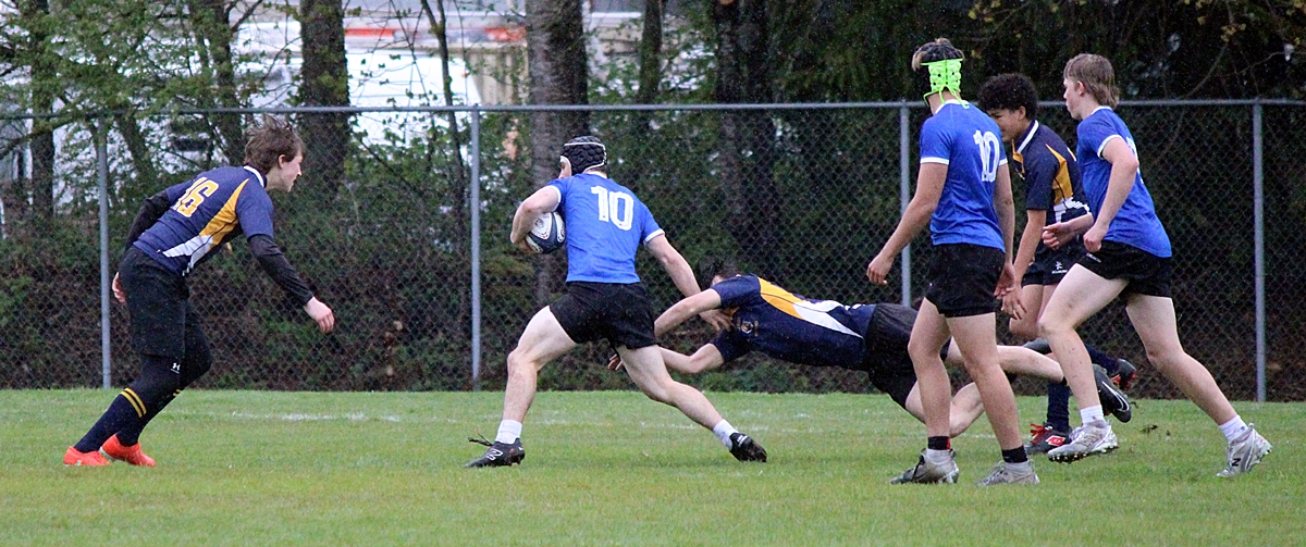 The EMCS Wolverines rugby teams had their home openers on Monday April 13th and Tuesday April 14th. The girls team kicked it off on Monday hosting Belmont, Spectrum and Glenlyon Norfolk schools for an afternoon of rugby 7s. The boys hosted Belmont and Esquimalt on Tuesday. The girls had the better weather, overcast and windy, compared to the boys who played under lashing rain throughout the afternoon. Photos of both days featuring the EMCS teams are posted below.